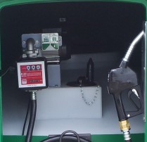 Bunded tank FDC 5000 for diesel oil storage and dispense is equipped with lockable engine room, which contains integrated dispensing equipment for easy operation, including reliable analog meter 20-120 l/min with accuracy of +/- 1% and 6 m long antistatic pressure hose. The tank is filled by cistern equipped with dispensing nozzle.
