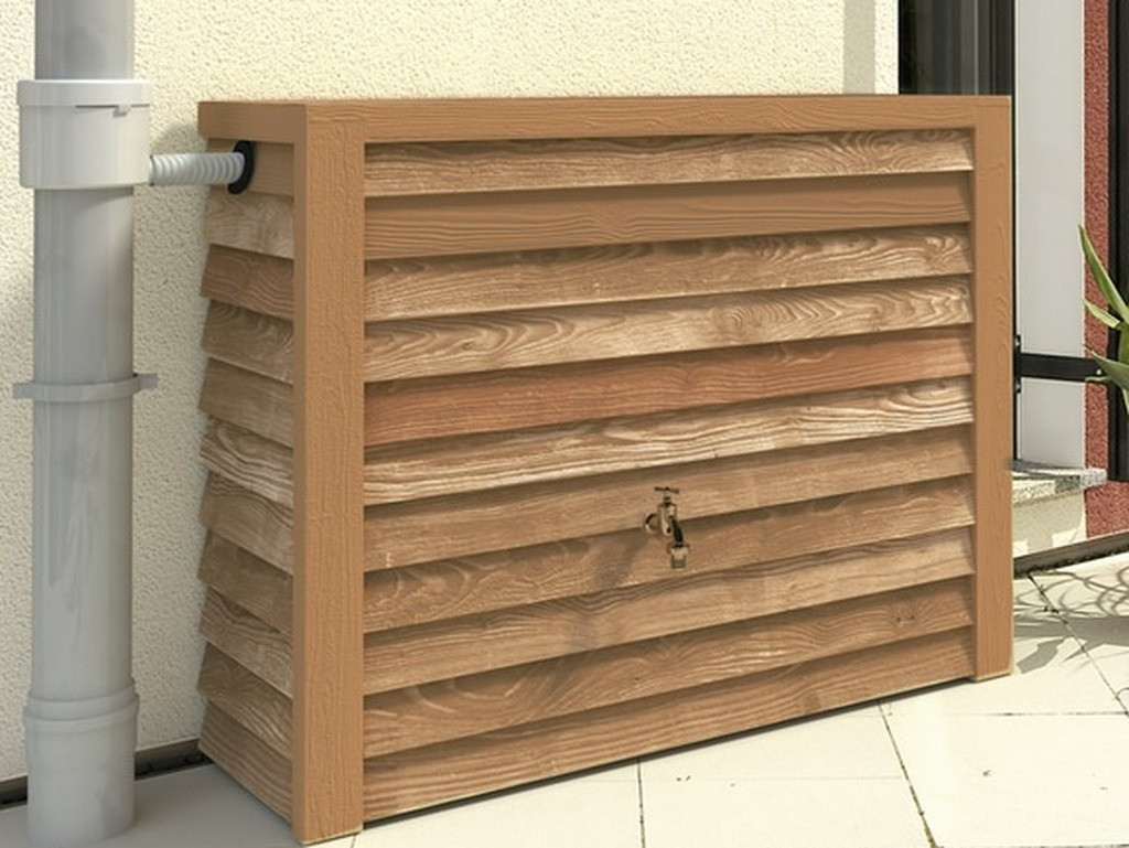 Plastová dekorativní nádrž na dešťovou vodu Ligneux o objemu 350 litrů je praktický a zároveň designový doplněk na zahradu. Nádrž zachytává dešťovou vodu ze střechy domu a umožňuje tak využívat přírodní zdroje i v období sucha a šetřit tak rodinný rozpočet. Povrch nádrže imituje světlé dřevo. Nádrž má výpustný otvor se závitem. Na boku nádrže je také servisní výpustný otvor pro vypouštění vody z nádrže na zimu a pro čištění.