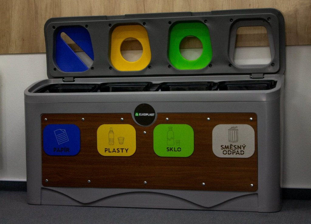 Každý vhoz má odlišnou barvu a výřez pro separování správného odpadu.