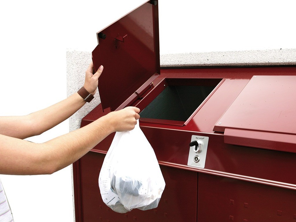 Jedna ruka na pytel na odpadky, jedna ruka na obsluhu.