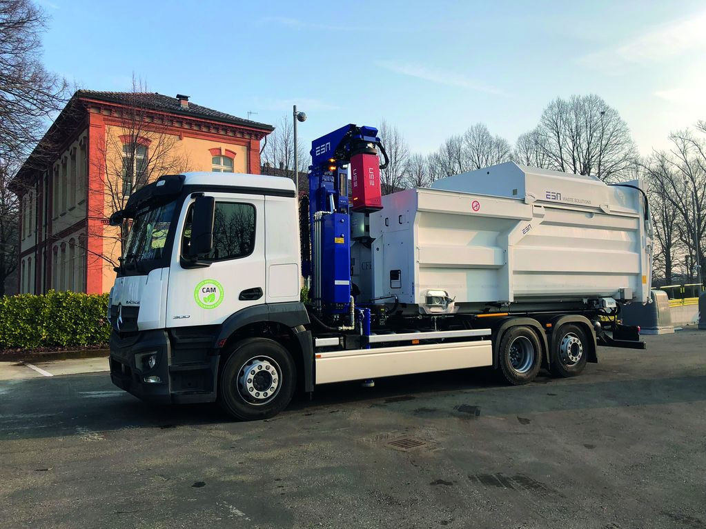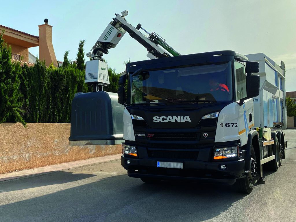 Robotická ruka umožňuje vysypávání kontejnerů z obou stran.
